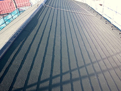 こちらは通勤通学に利用される大変人通りの多い道路沿いですので、破損した屋根材が風で落下して通行人がケガでもしたら大変なことになります。