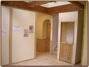 珪藻土は海底に溜まった貝殻やプランクトンの死骸などを使い、仕上材としたもので、無垢材と合わせて使用することで、その素材の暖か味は倍増し、とても良い空間を演出してくれます。 |